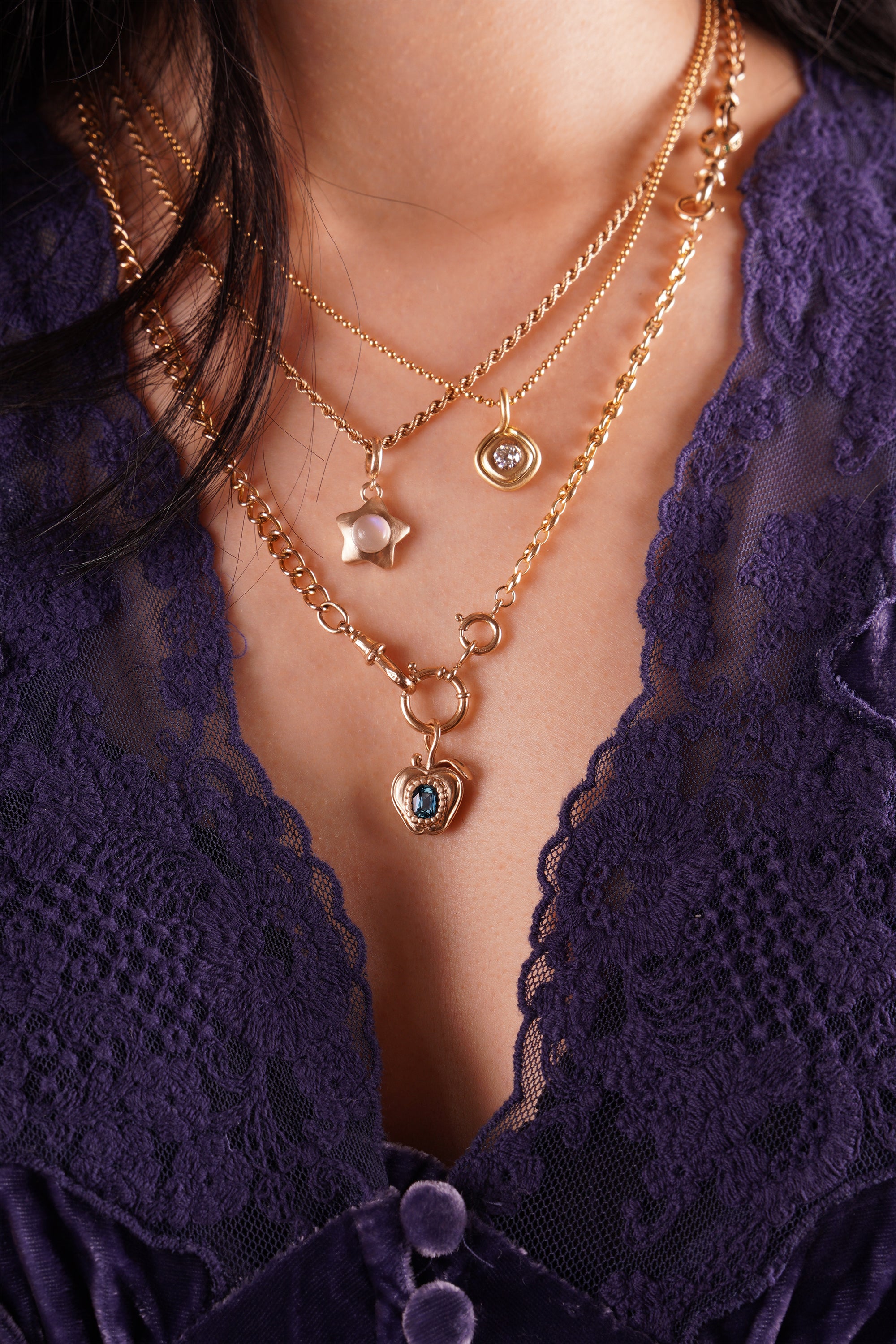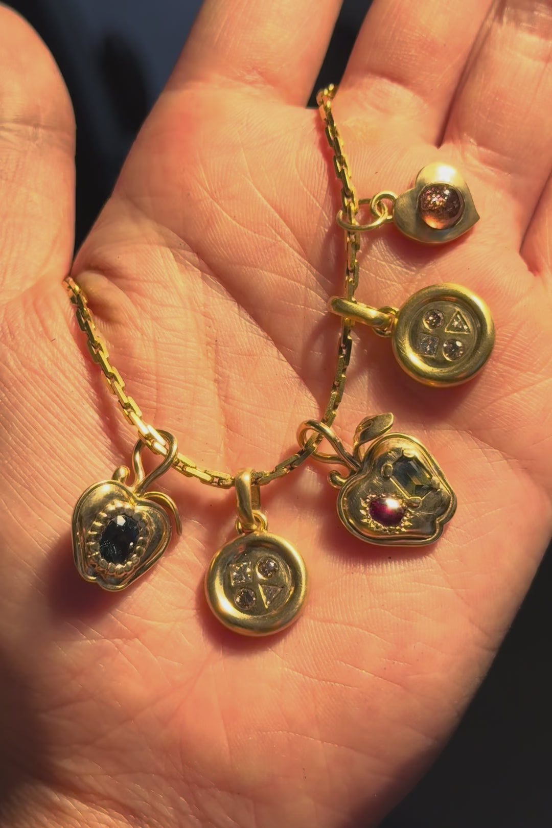 - One-of-a-kind apple charm, part-apple, part-heart — an ode to childhood sweetness and the precious things we carry close