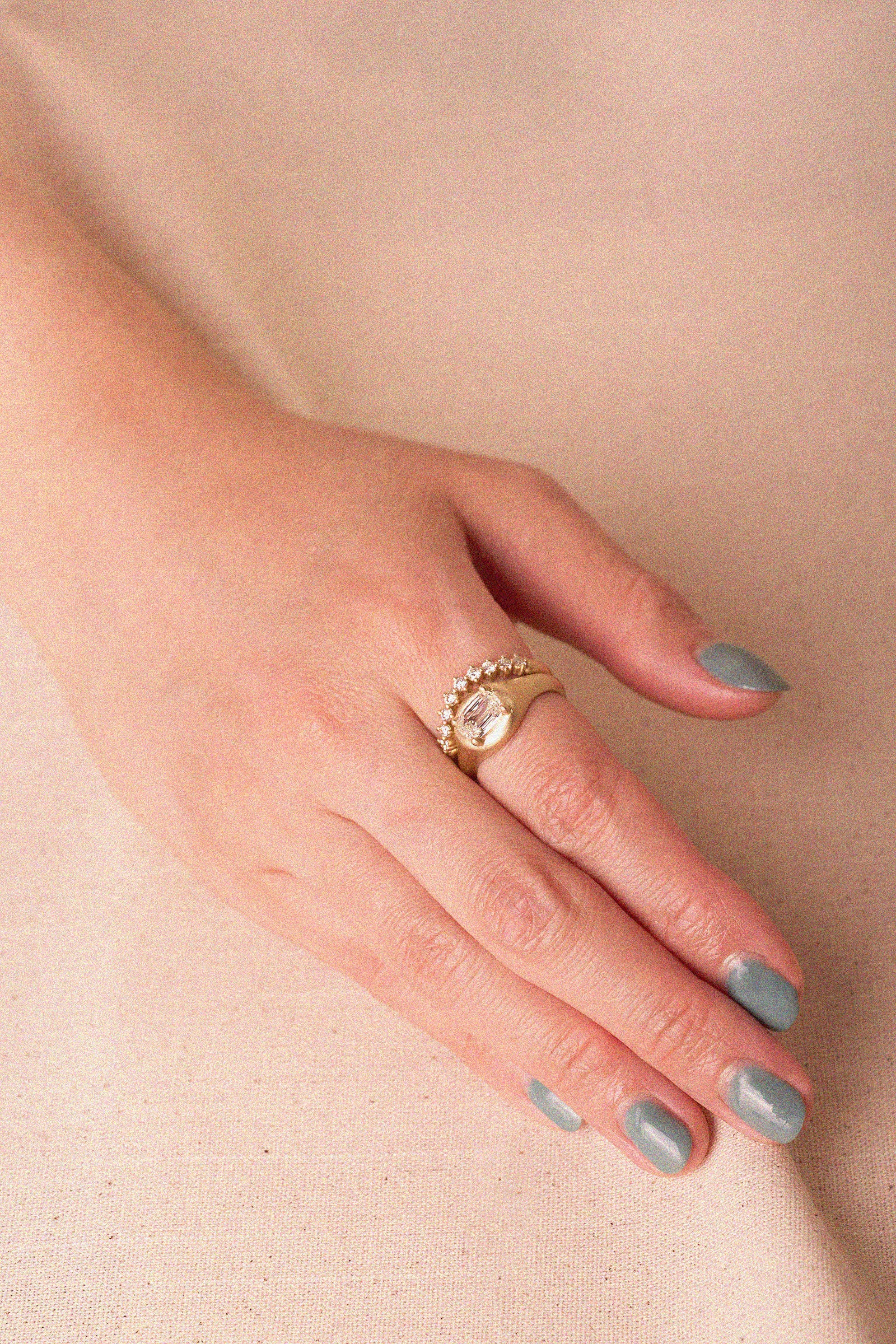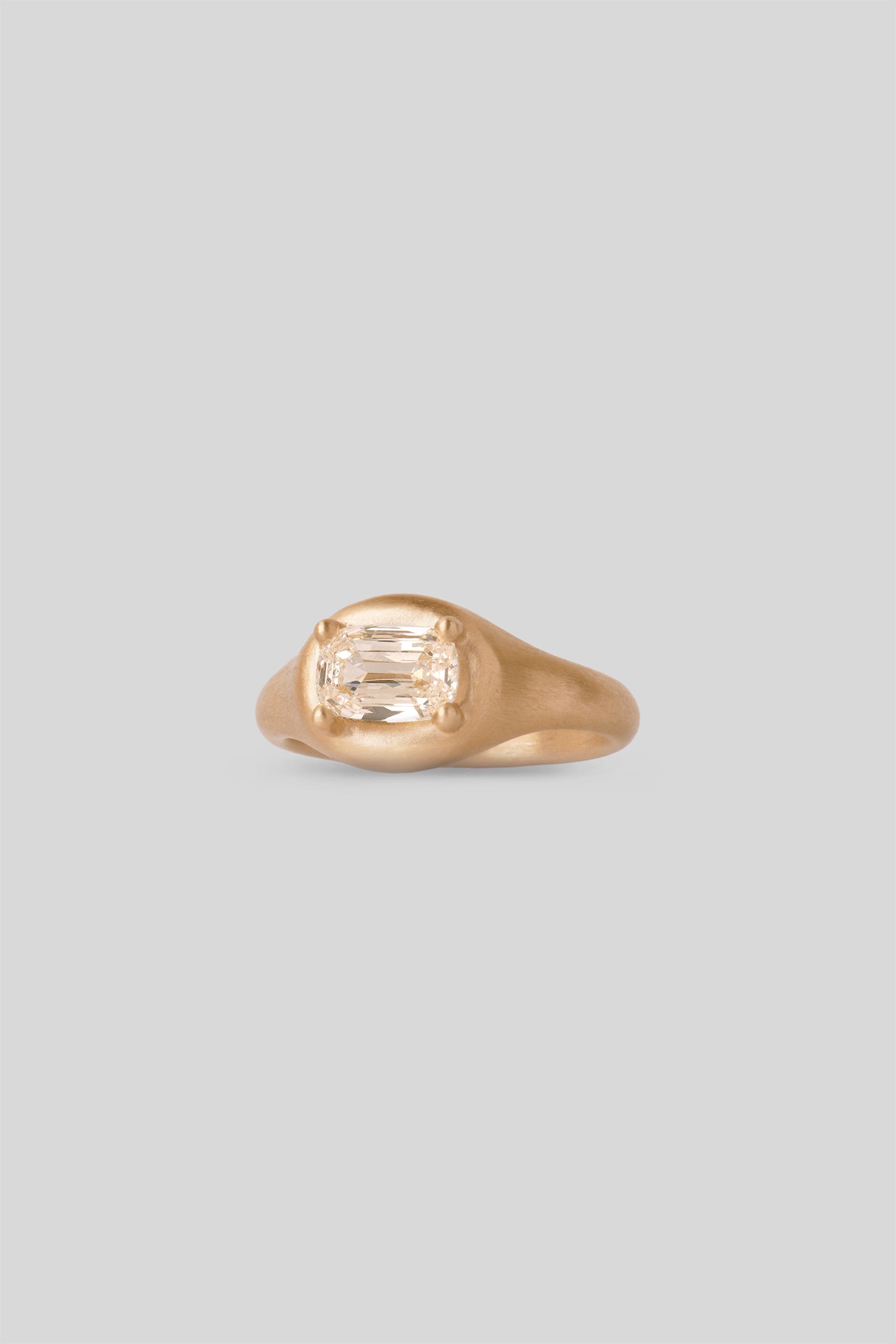 - 14k solid gold in US 6.5 set with a 1.21ct natural antique-inspired mixed cut VS2 J diamond.