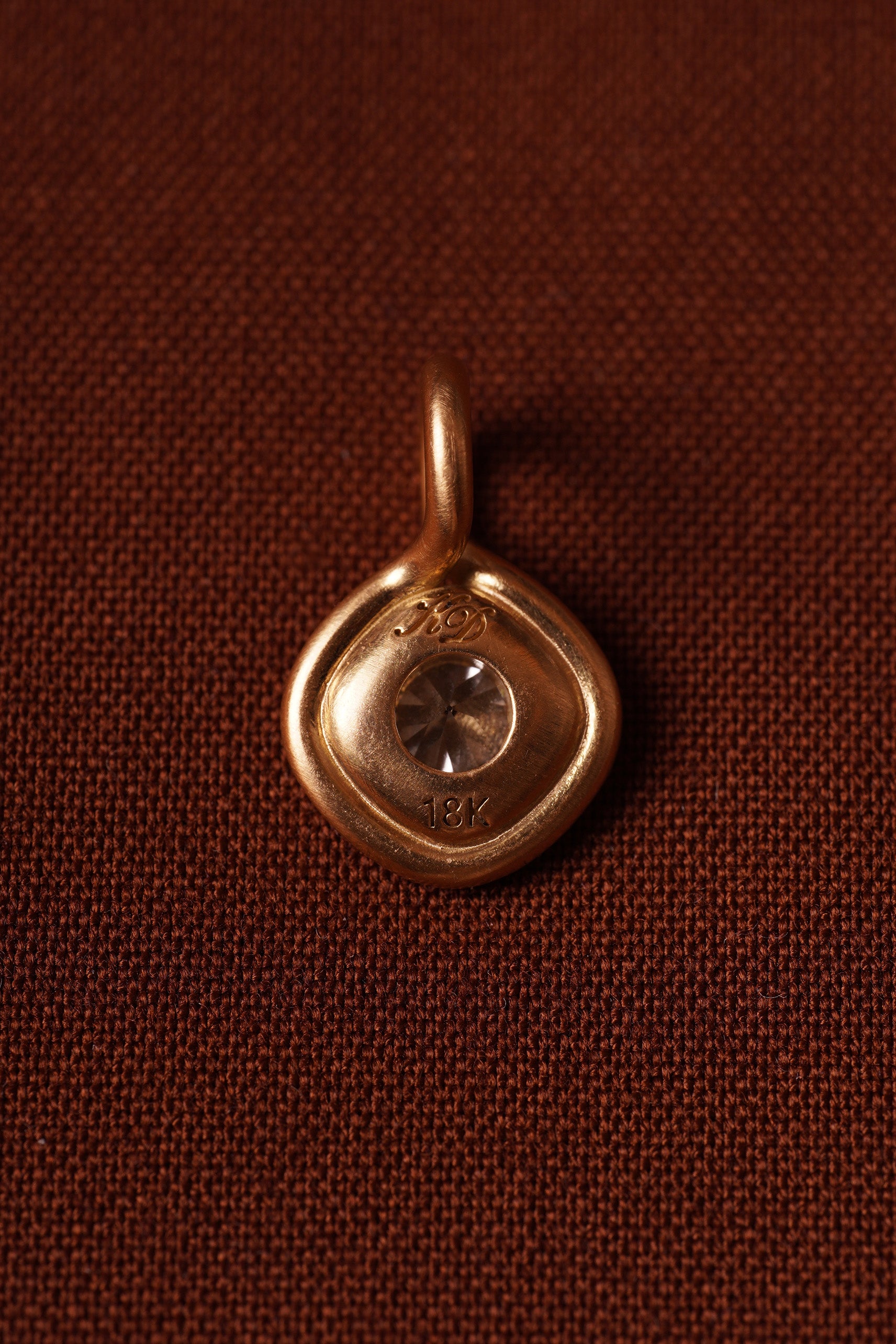 - A comforting, stuffed-ravioli form with a gentle, familiar warmth. A noodly bail wraps around the cushiony gold shape in an easy, organic embrace.