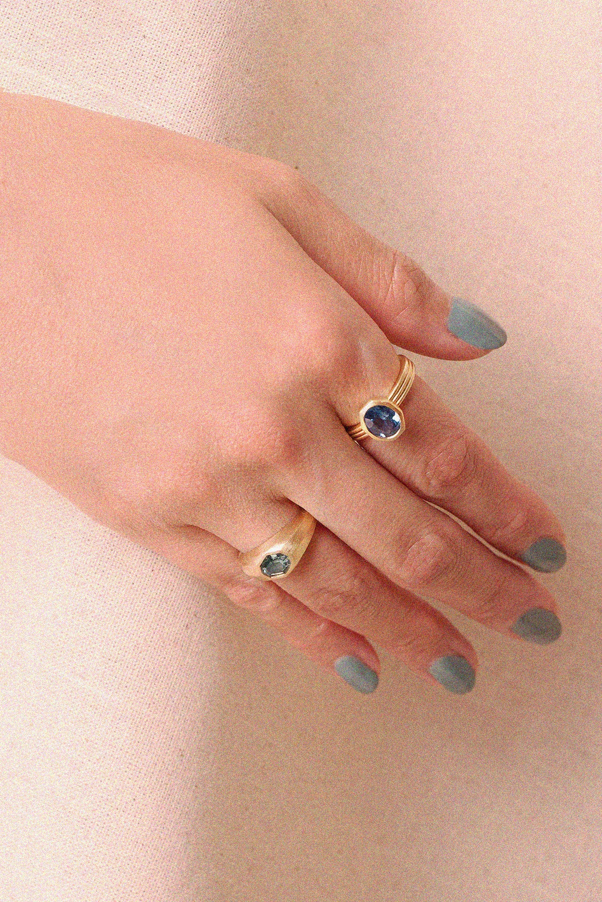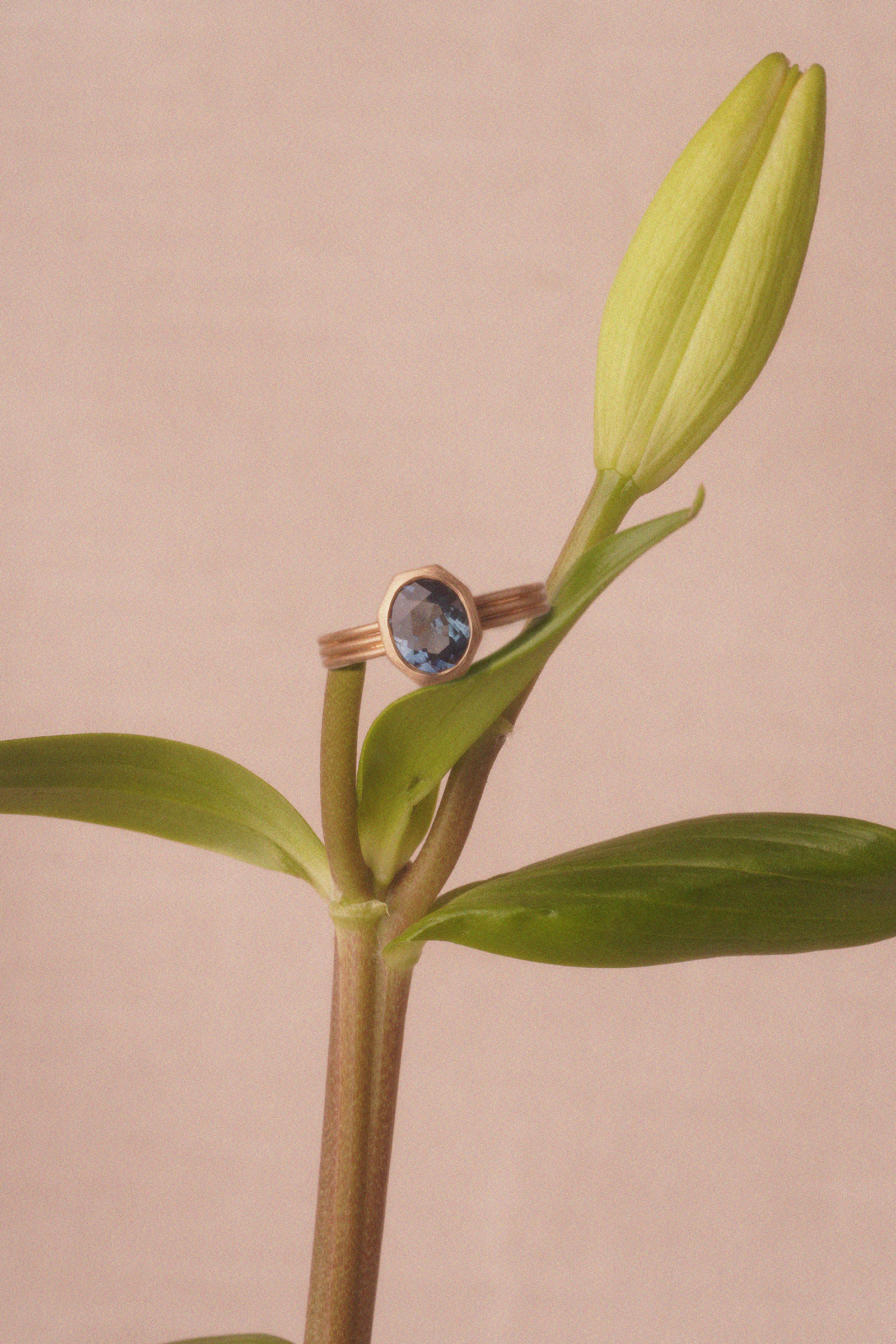 - 14k solid gold set with a natural blue approx. 1.2ct sapphire in US 6.5.